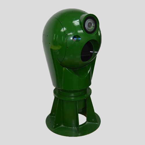 自動(dòng)跟蹤球型光電轉(zhuǎn)臺(tái)攝像機(jī)采用陀螺穩(wěn)定超強(qiáng)抗風(fēng)轉(zhuǎn)臺(tái)、低照度高清透霧攝像機(jī)、高清透霧鏡頭、熱成像儀,軍用大功率激光器(選用),通過(guò)科學(xué)、先進(jìn)的手段集合而成,具有背景反差好、成像清晰、使用高分辨率低照度彩轉(zhuǎn)黑攝像機(jī),可進(jìn)行晝夜對(duì)目標(biāo)的識(shí)別、監(jiān)測(cè)、手動(dòng)鎖定、自動(dòng)追蹤、測(cè)向預(yù)判,將視頻畫(huà)面?zhèn)骰貦C(jī)房及指揮中心(總部),可以拉遠(yuǎn)拉近看,以便領(lǐng)導(dǎo)做出決策,如拉警號(hào)預(yù)警將人員疏散或者藏進(jìn)防空洞等,但不擊打及干預(yù)目標(biāo)物。